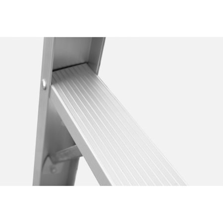 A large grooved platform and wide ribbed step provide stable access from both sides.