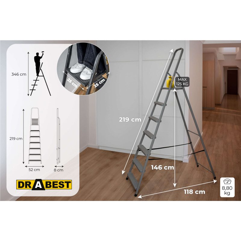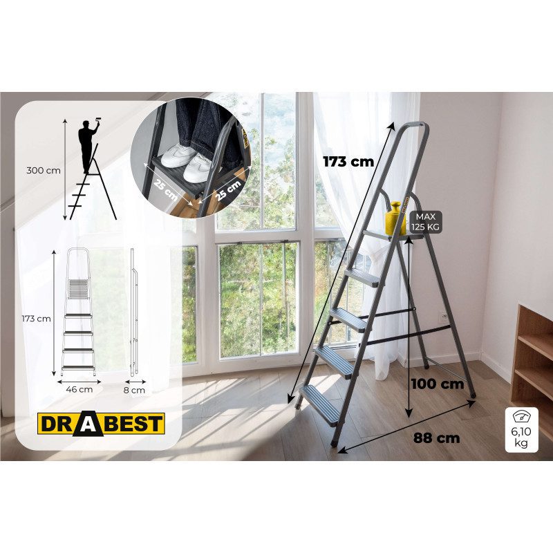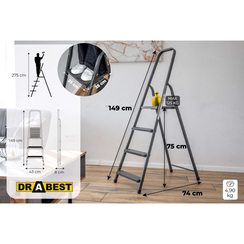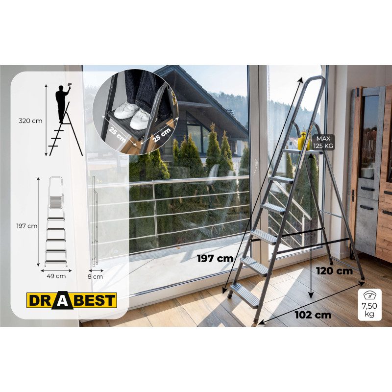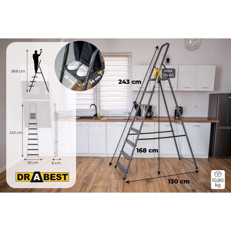 A sturdy steel ladder designed for all household, outdoor, and renovation tasks.