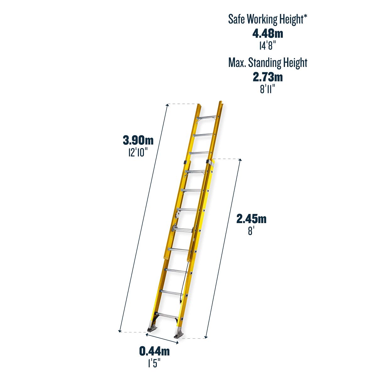- Non-conductive fibreglass stiles, ideal for working around electricity