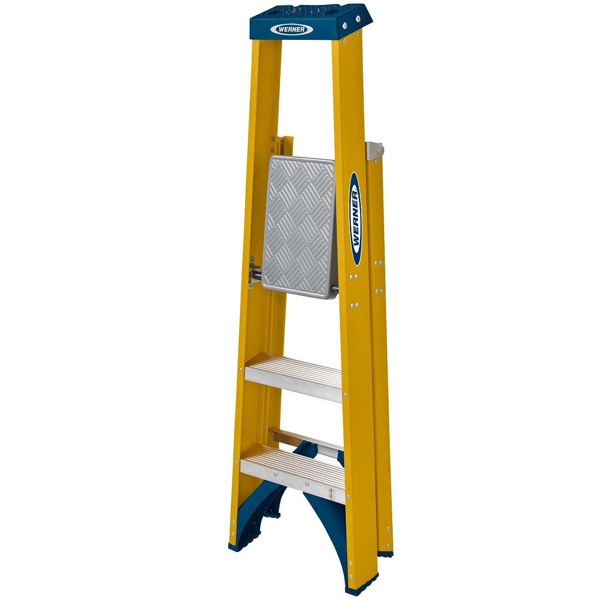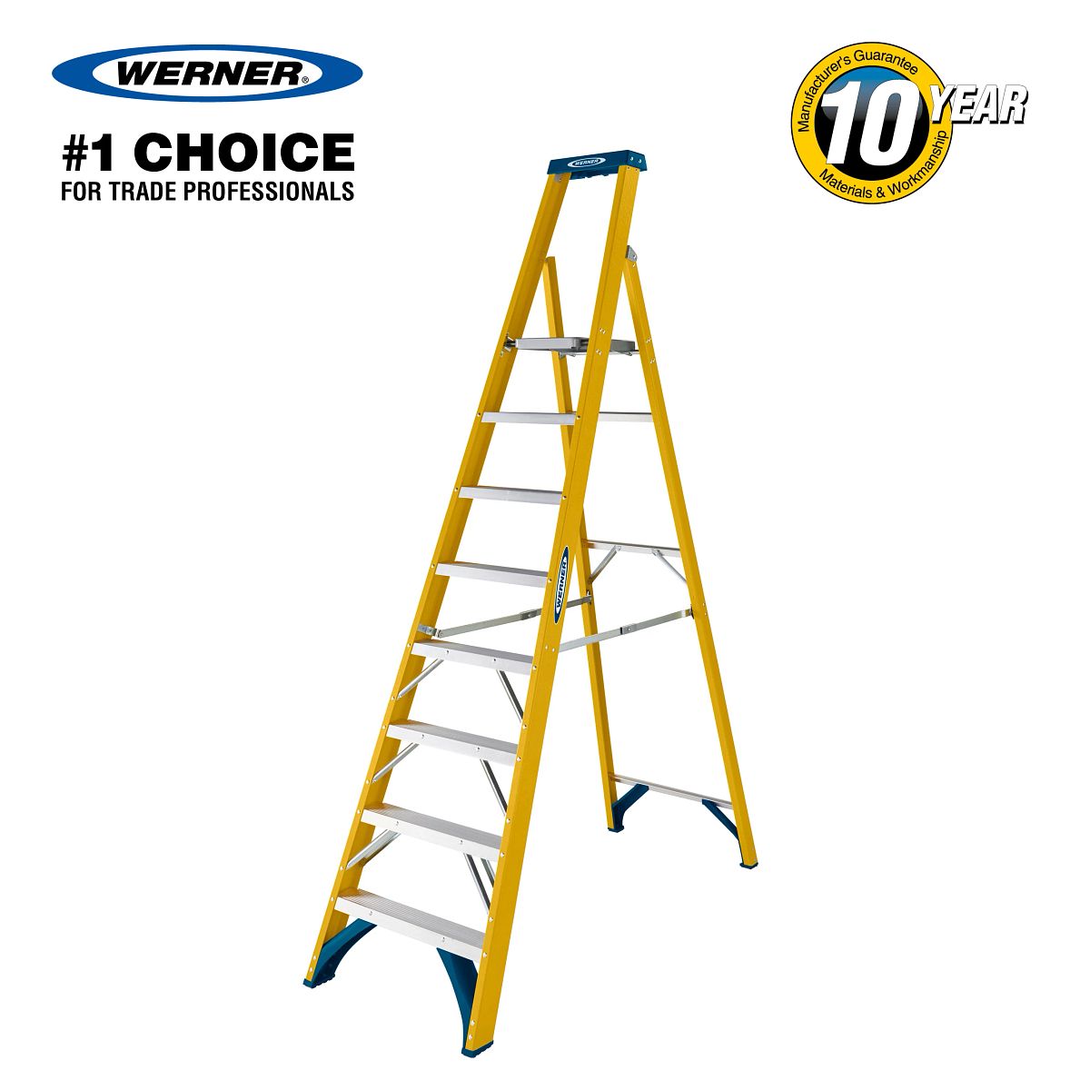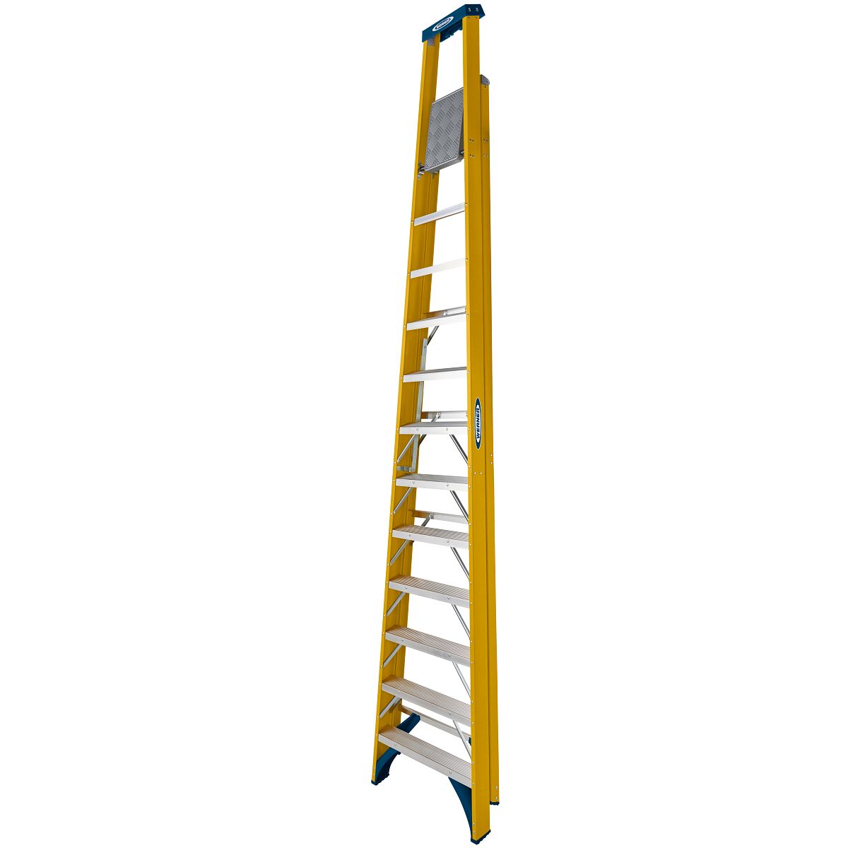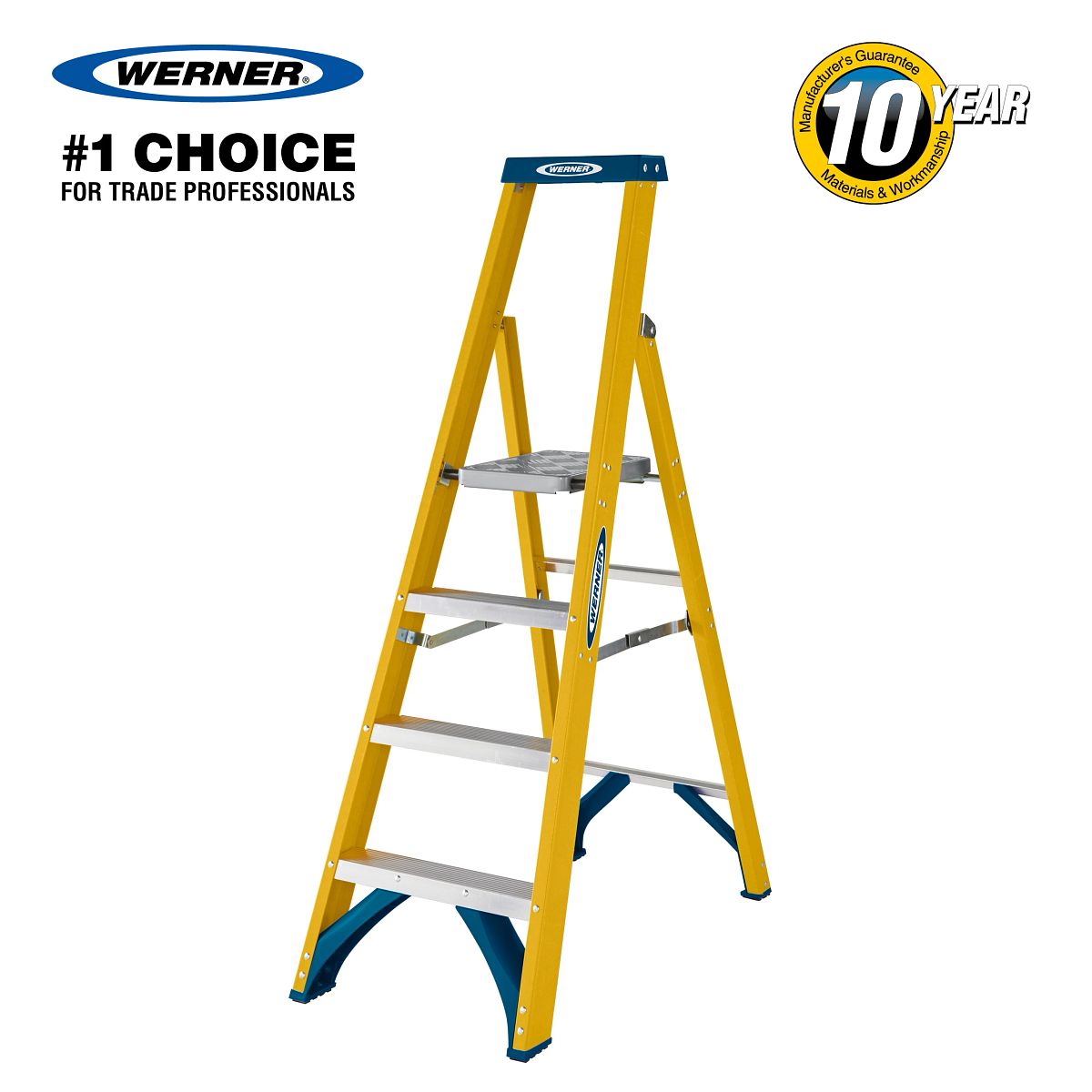 These Werner trade fibreglass platform step ladders (previously Catwalk S400) provide a Lock-In Accessory System that lets you customise the ladder top and safely secure your tools. They also feature EDGE bracing which provides enhanced strength and increased protection against damage.