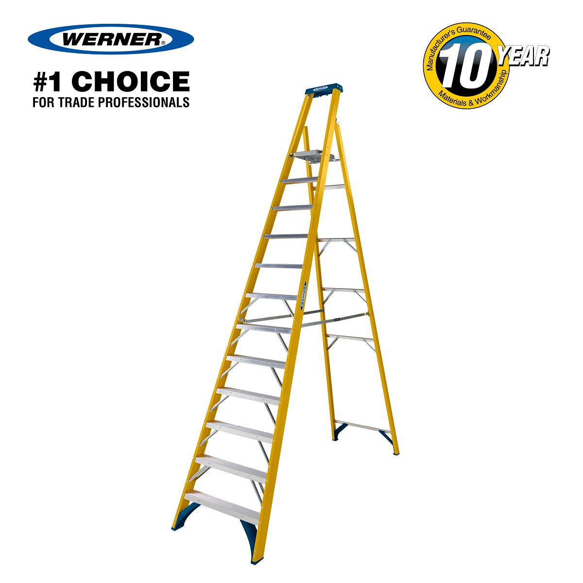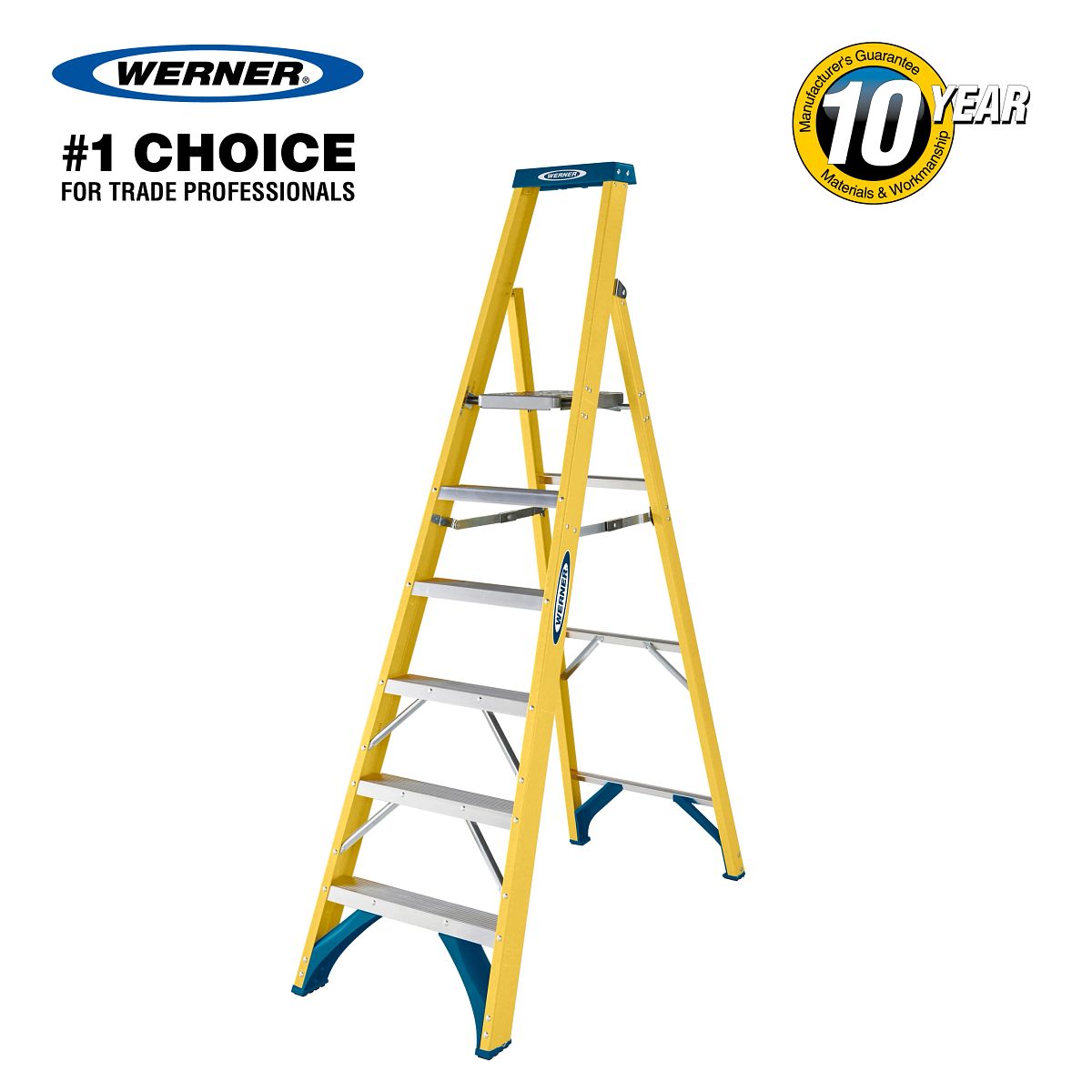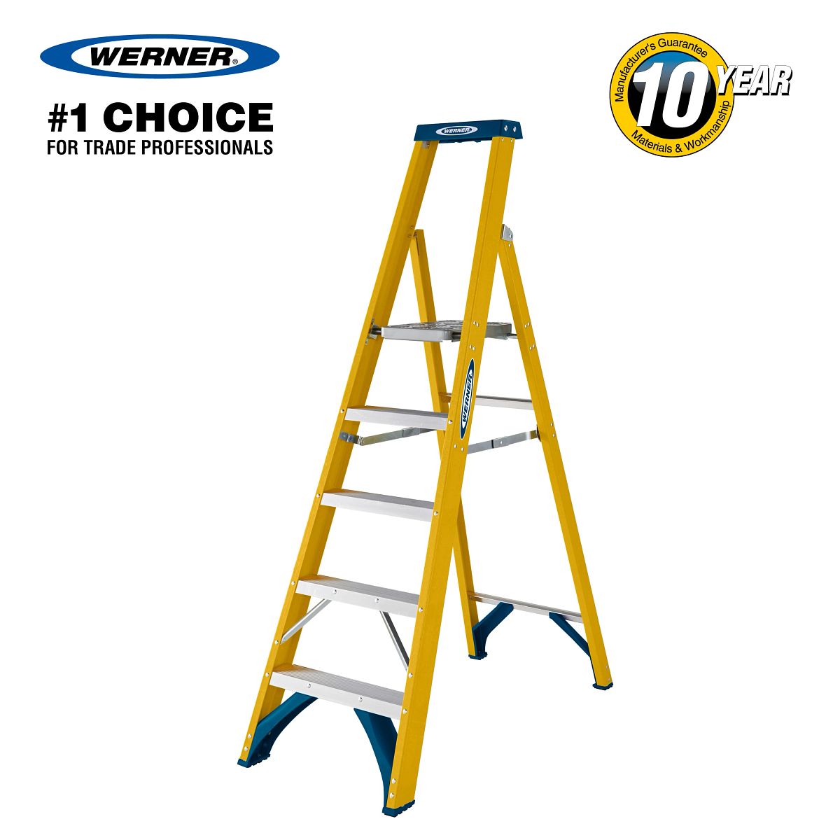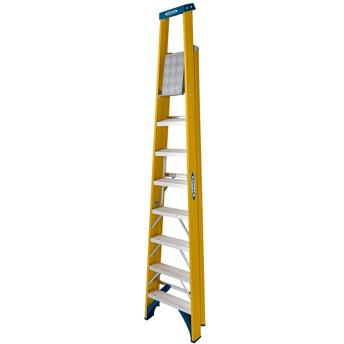 These Werner trade fibreglass platform step ladders (previously Catwalk S400) provide a Lock-In Accessory System that lets you customise the ladder top and safely secure your tools. They also feature EDGE bracing which provides enhanced strength and increased protection against damage.