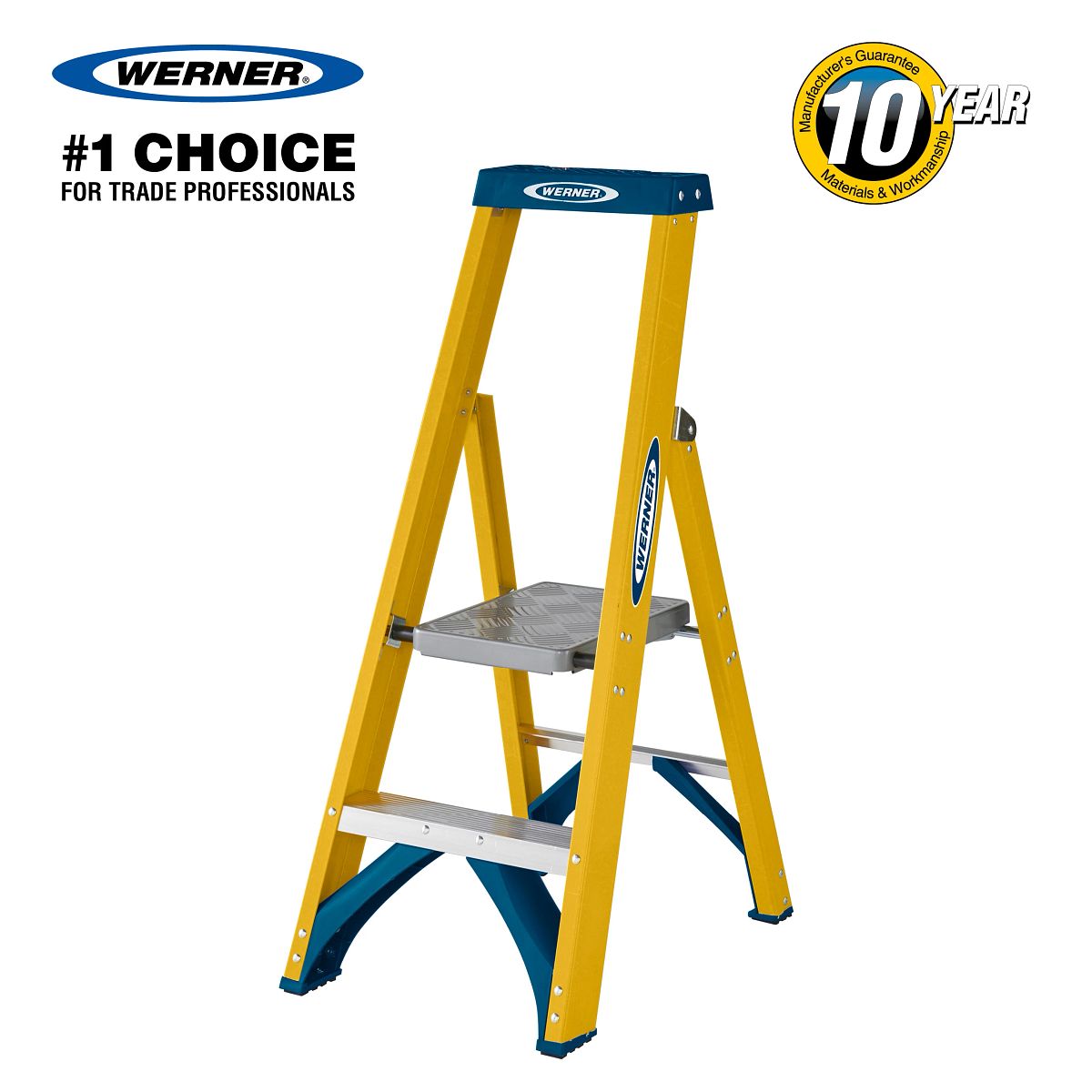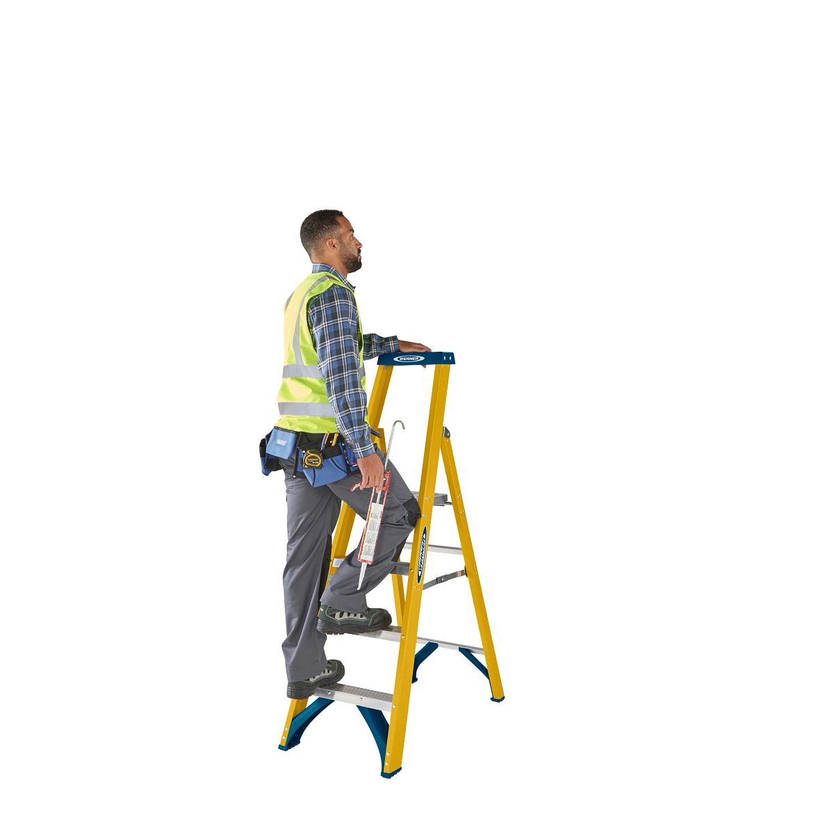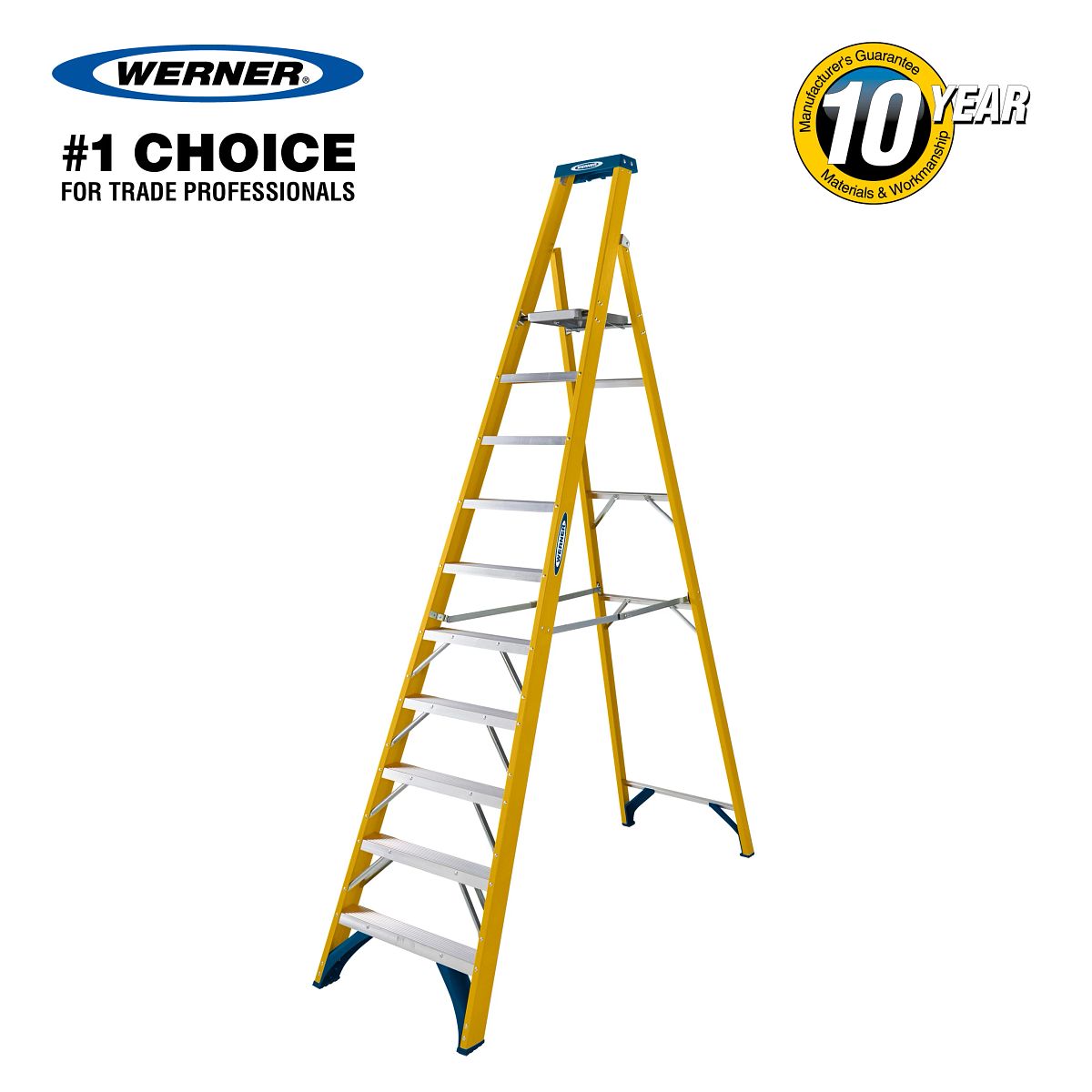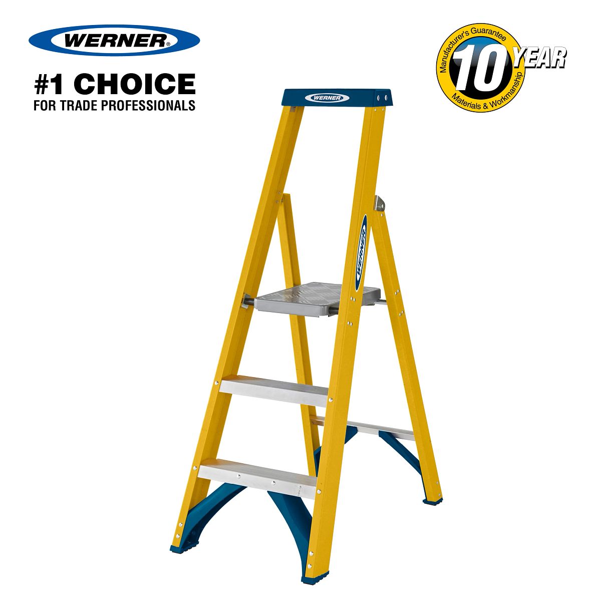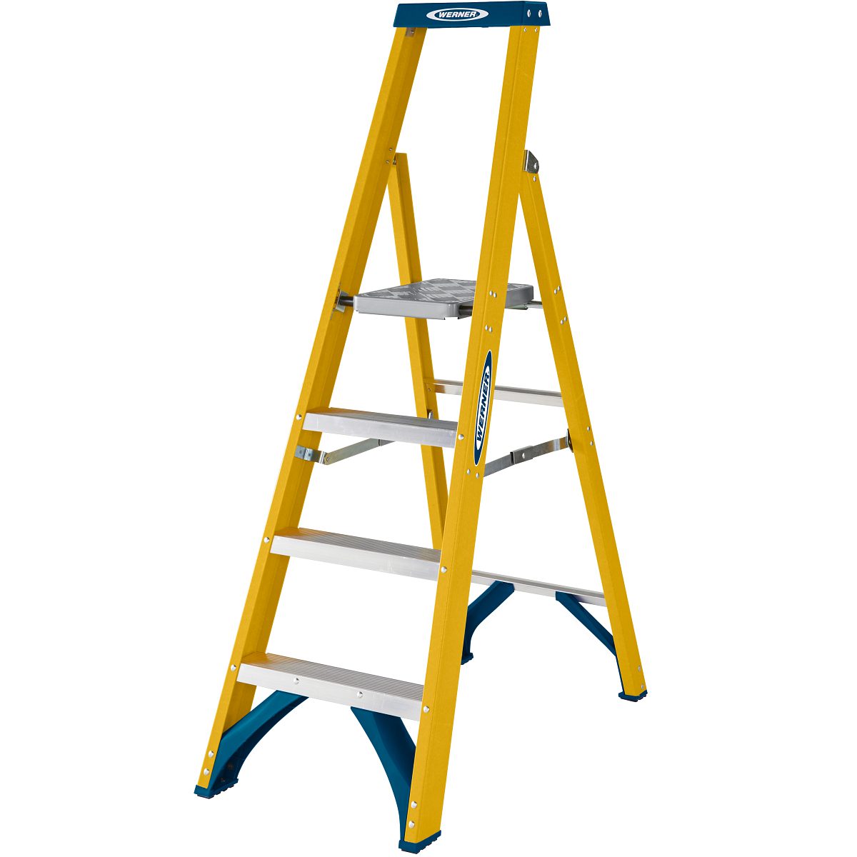 These Werner trade fibreglass platform step ladders (previously Catwalk S400) provide a Lock-In Accessory System that lets you customise the ladder top and safely secure your tools. They also feature EDGE bracing which provides enhanced strength and increased protection against damage.