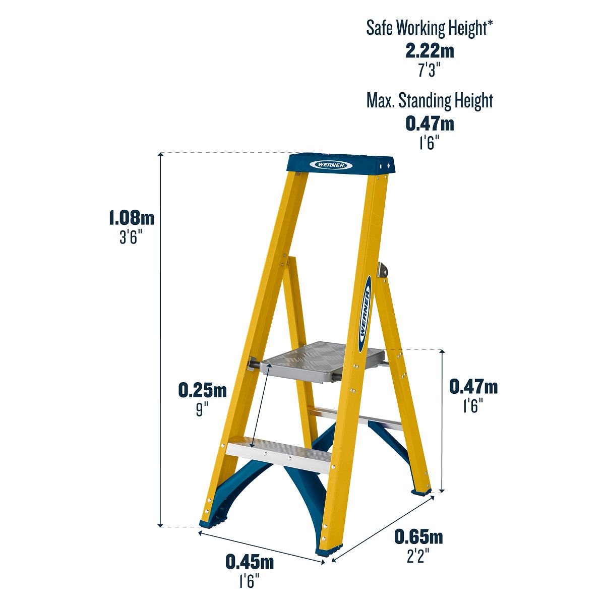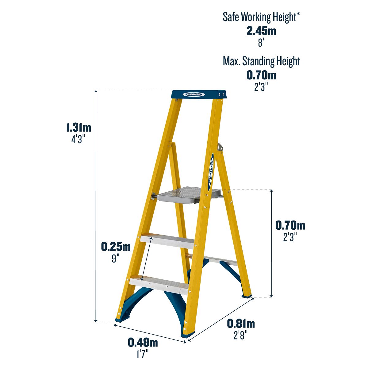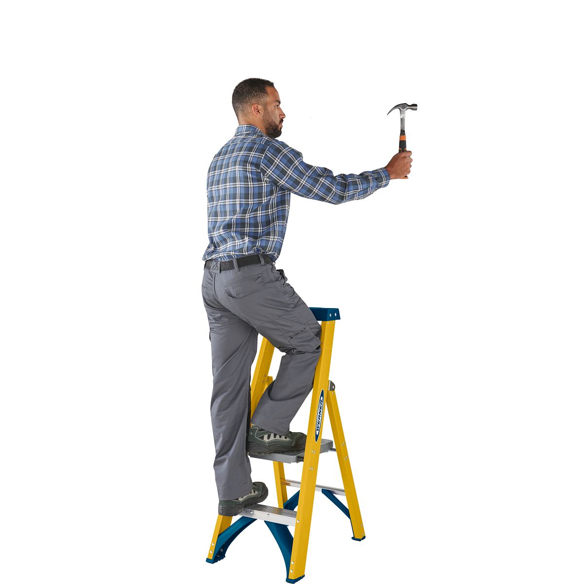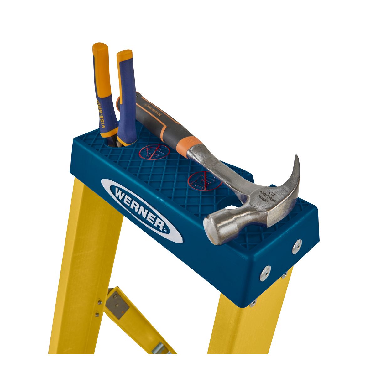 These Werner trade fibreglass platform step ladders (previously Catwalk S400) provide a Lock-In Accessory System that lets you customise the ladder top and safely secure your tools. They also feature EDGE bracing which provides enhanced strength and increased protection against damage.