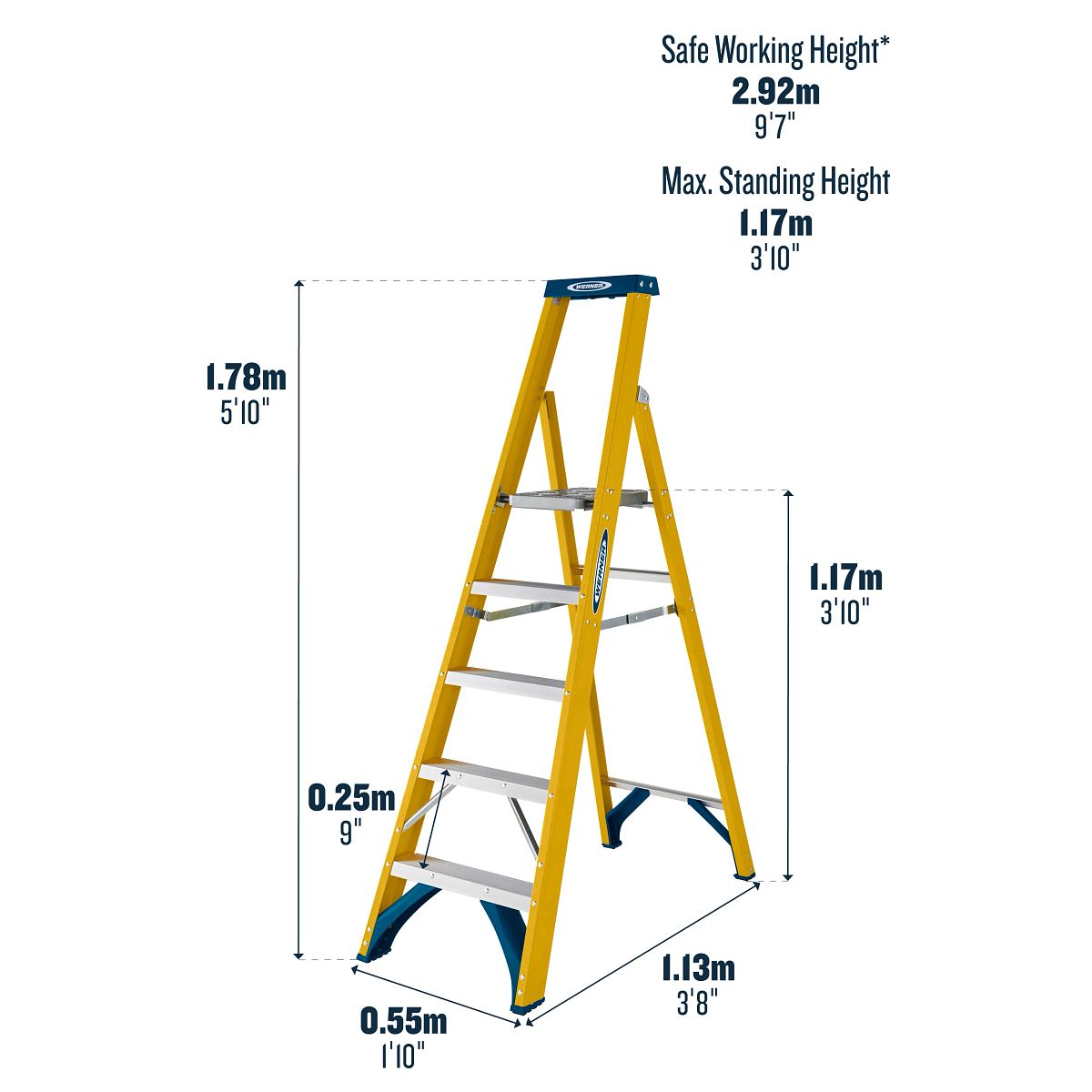 - Non-conductive fibreglass stiles, ideal for working around electricity